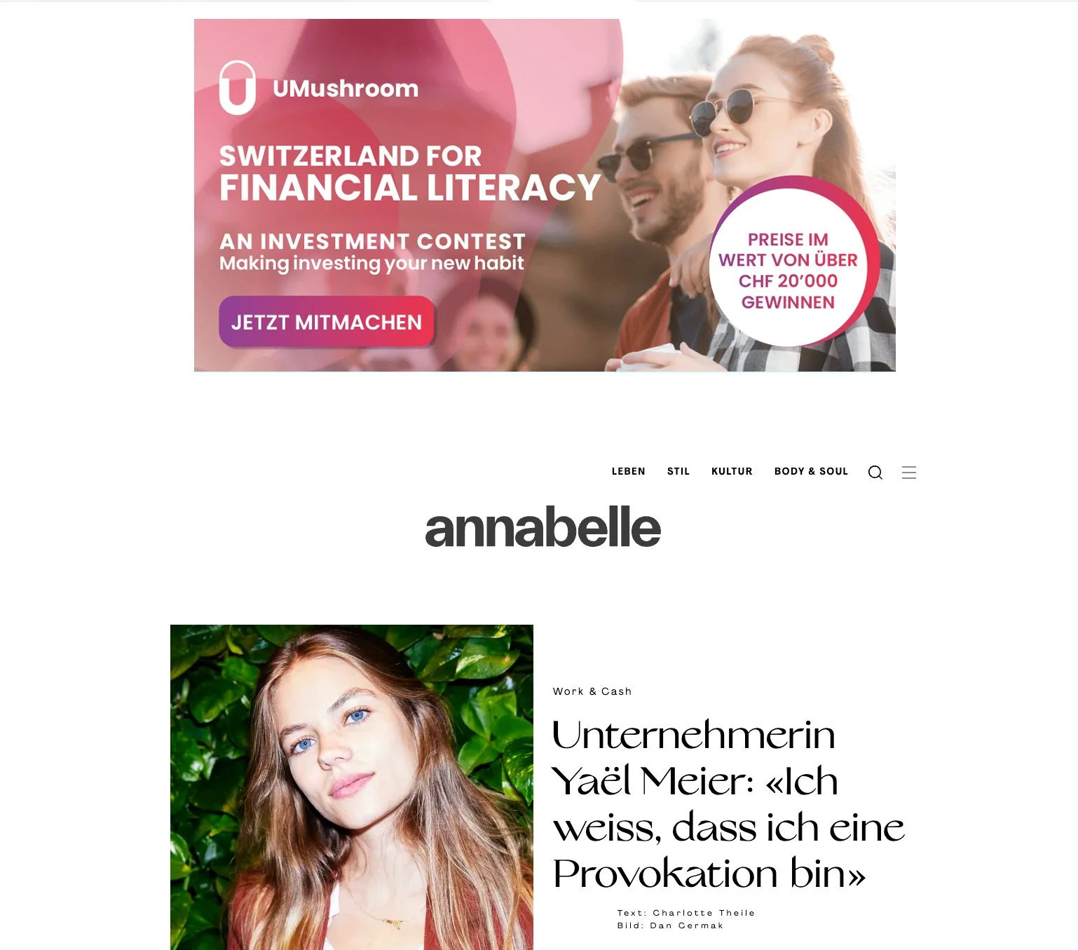Mit einer programmatischen Performance Kampagne bewirbt Drop8 den Contest von UMushroom “Switzerland for Financial Literacy 2024”. Dabei geht es darum, sich im Wettbewerbszeitraum von Februar bis April 2024 das notwendige Investment-Wissen Schritt für Schritt anzueignen um mit diesem ein fiktives Investment-Portfolio zu erstellen, welches am Ende des Contests von einer renommierten Jury bewertet und mit attraktiven Preisen honoriert wird.